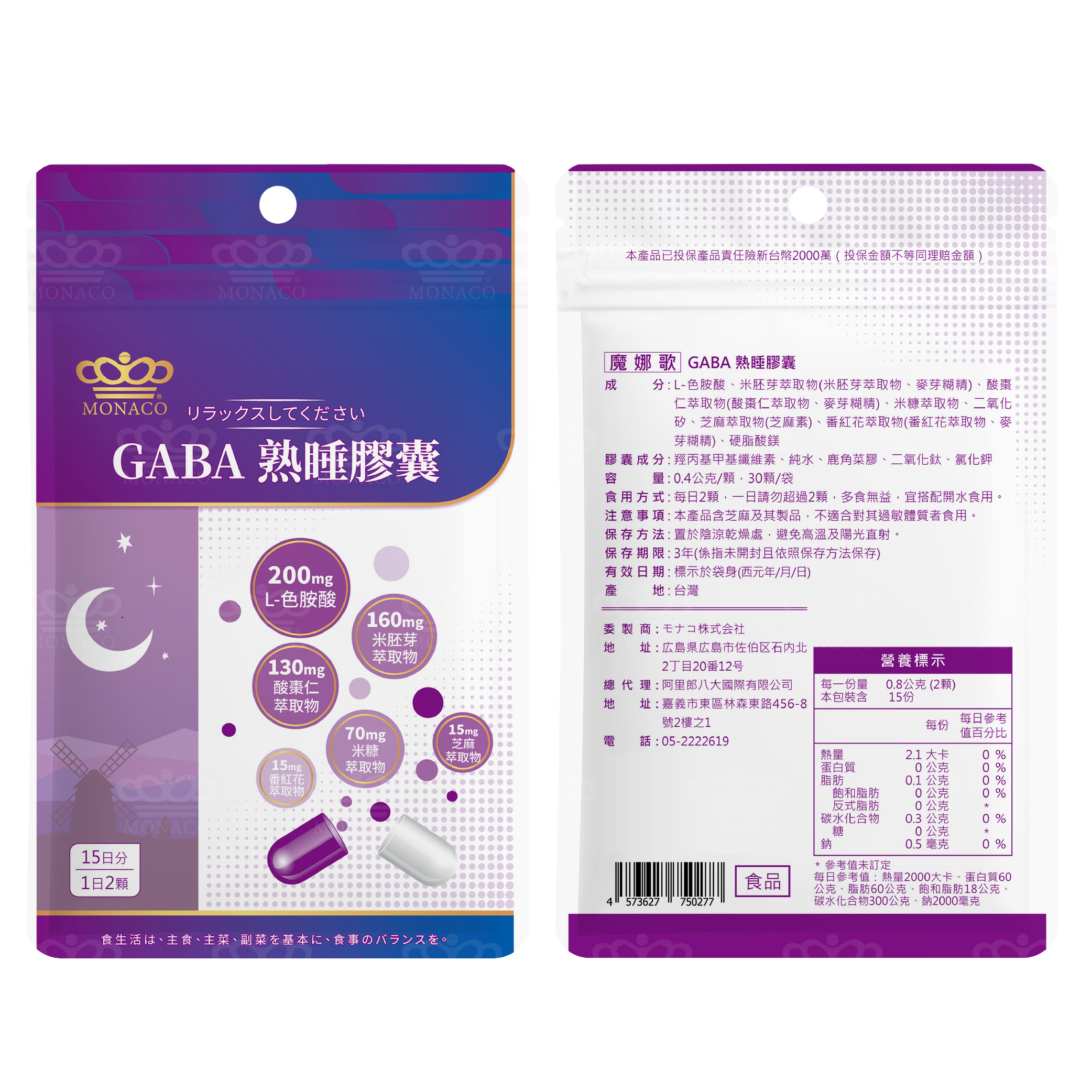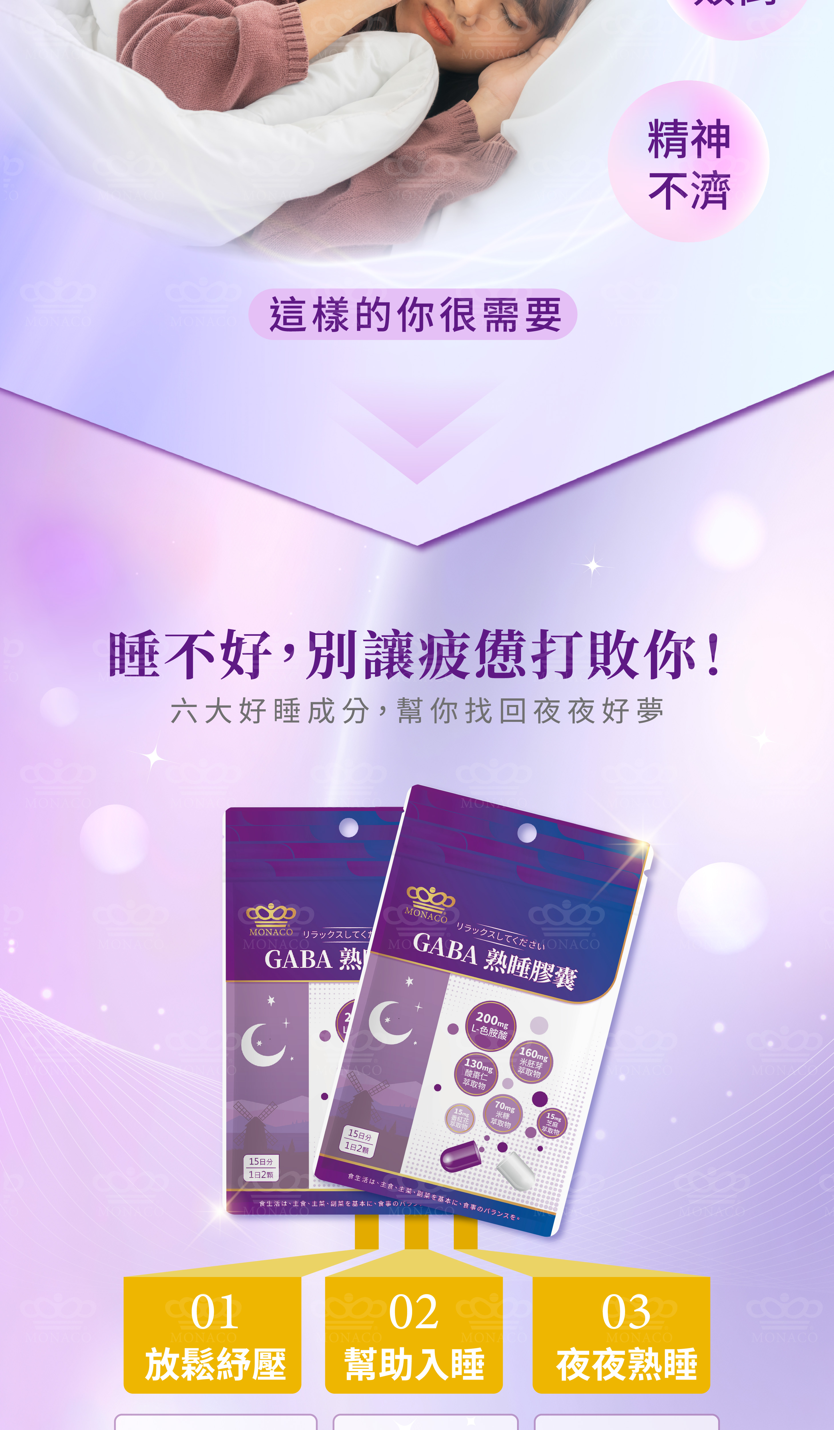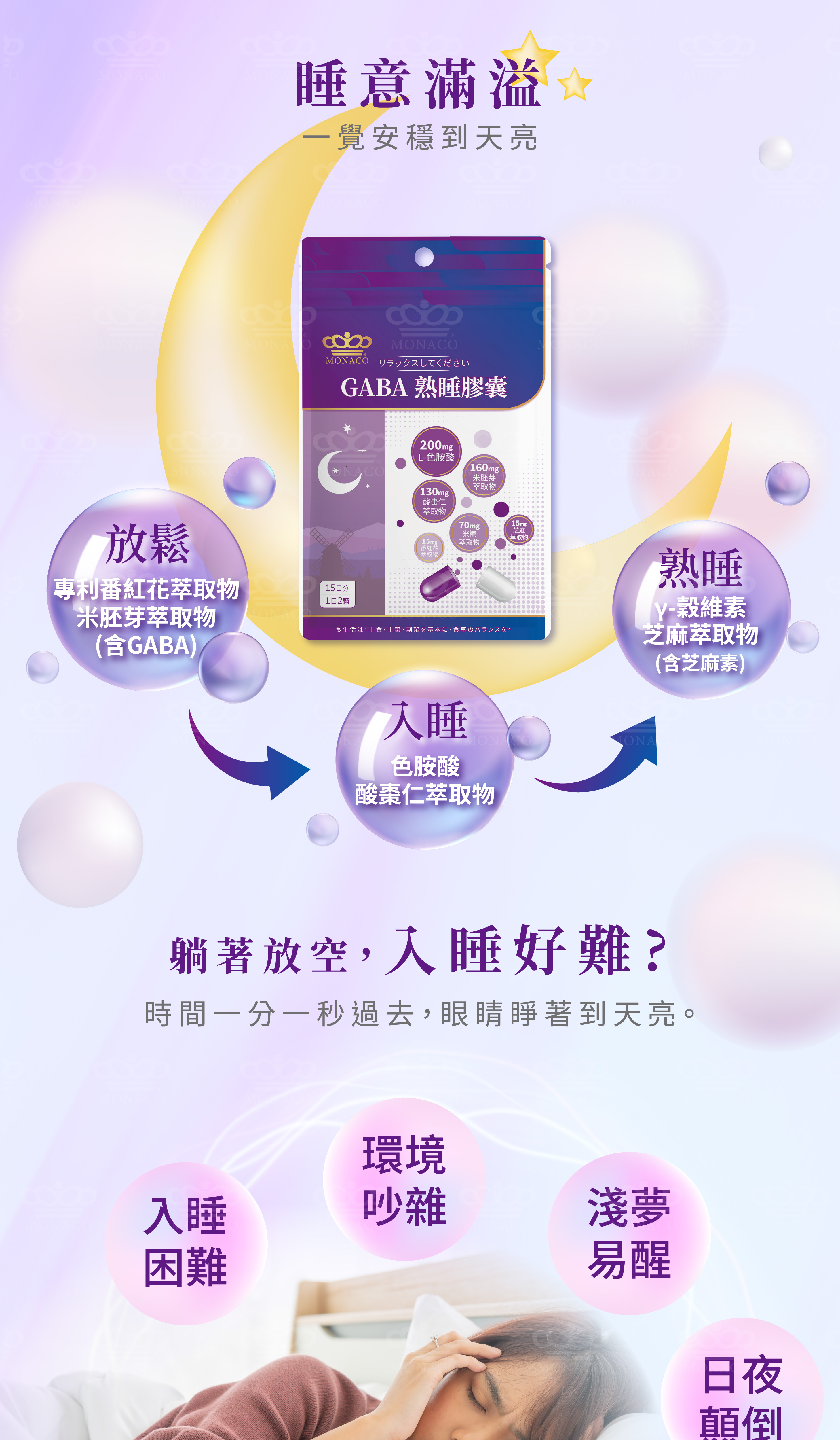 - 商品名稱:魔娜歌® MONACO|GABA熟睡膠囊